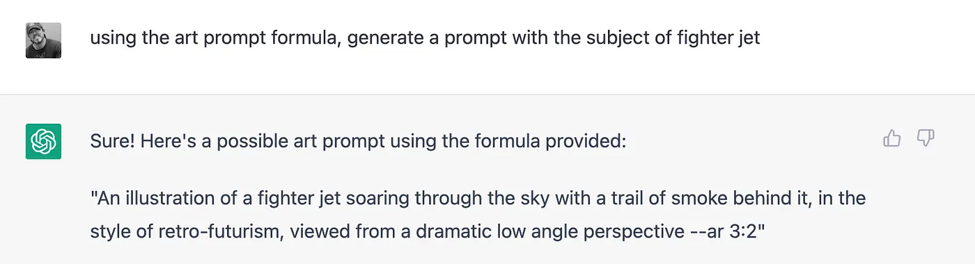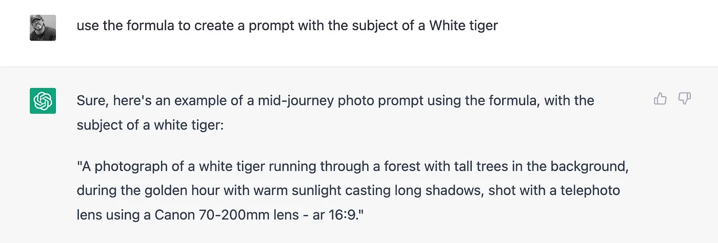 2. Then, ask it to use the formula to generate a prompt based on a subject.