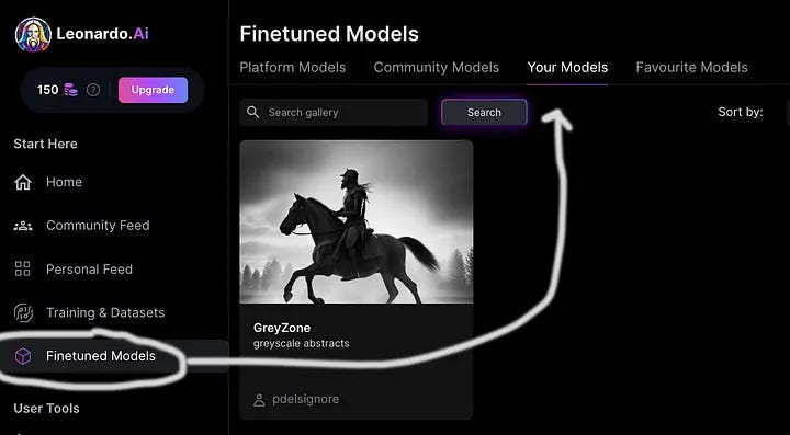 Once Leonardo has completed the process of training, the model will be available in the Finetuned Models > Your Models section