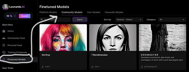 While the featured models are considered the platform models in Leonardo, it gets really interesting when you explore the community models.