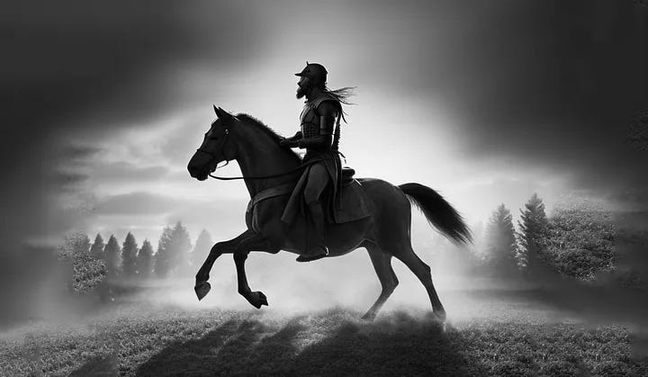 Here is an image I generated with my GreyZone model… using the following prompt — Odin riding a horse, dramatic lighting, dark, realistic, cinematic: