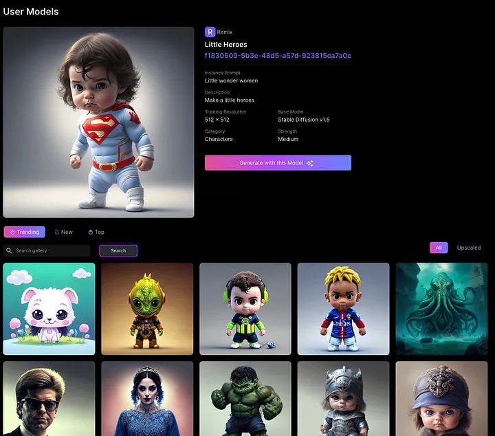 For example, here is a fine-tuned model called ‘Little Heroes.’